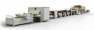 The maximum production speed is up to 40m/ min, the whole line is highly automated, the base paper loss is low, and the flatness of the composite board is high