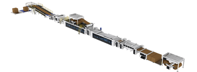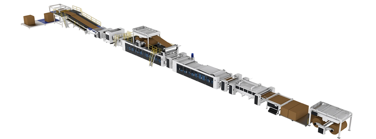 最高生产速度高达120m/分钟,整线自动化程度高,原纸损耗低,纸板平整度高;拥有十多项专利。