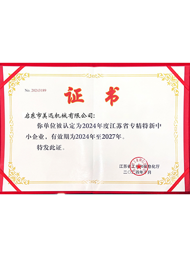 启东市美迅机械有限公司是省专精特新,国家高新技术企业。